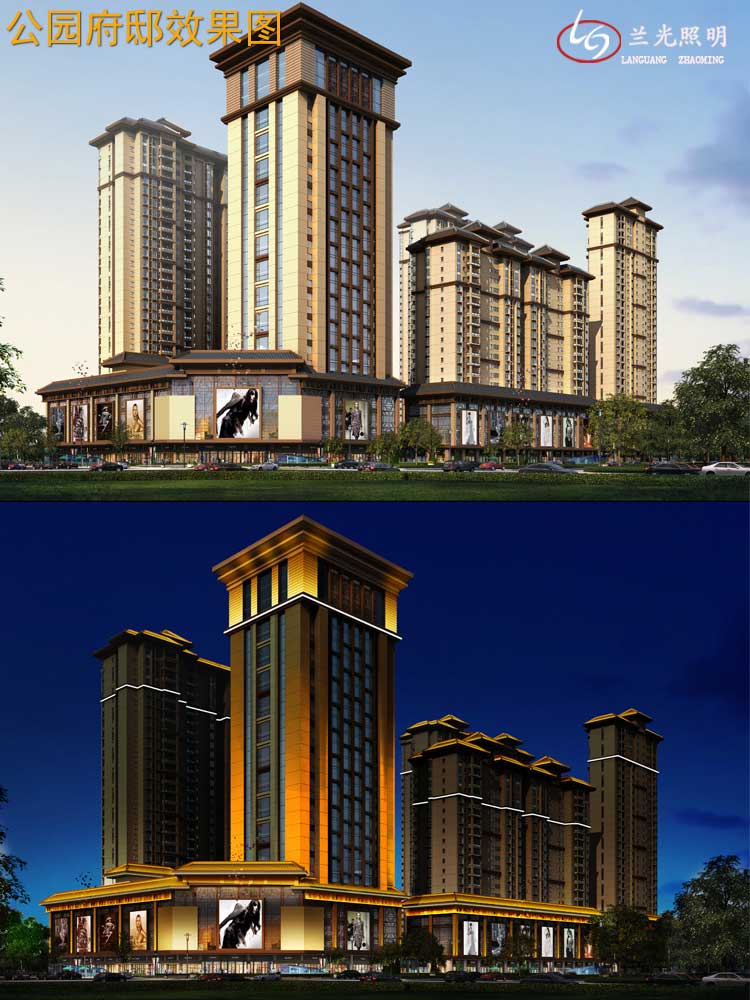 簡介—— 西安公園府邸小區(qū)樓體亮化設計, 大興公園府邸項目總共分2期;總共9棟樓;我們對于樓體的設計主要是采用主辦公樓洗墻燈打亮樓層墻面,頂部投光燈整體打亮為效果基礎,是樓體整體金碧輝煌,大氣感十足,溫暖而莊重。