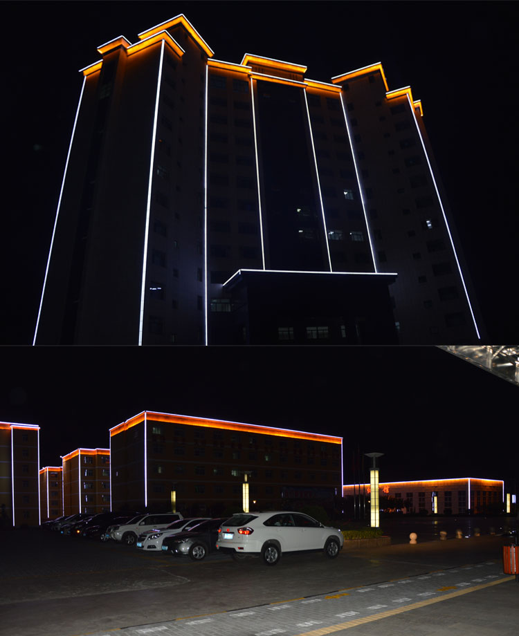 銅川建新煤化是我公司承接的廠區(qū)亮化工程之一,該項(xiàng)目整體從設(shè)計(jì)到施工,全程有我公司承擔(dān)負(fù)責(zé),設(shè)計(jì)根據(jù)甲方的要求,采用簡潔明了的線條勾勒輪廓和打亮為主。在廠區(qū)主要的辦公樓、餐廳、員工活動(dòng)中心、員工福利中心、員工宿舍樓等員工主要活動(dòng)的場所樓進(jìn)行重點(diǎn)亮化。