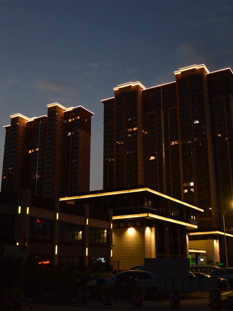 簡介—— 2020年陜西渭南上上地產上上國風亮化工程項目,是我們陜西蘭光戶外照明有限公司與上上地產在渭南地區的合作項目,項目地點位于勝利大街,屬于住宅性質的樓體,本項目已常規地產亮化方式進行夜景照明,主要是以勾勒樓頂天際線為主簡約而美觀。
